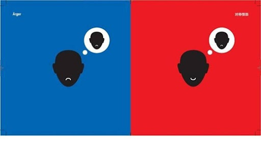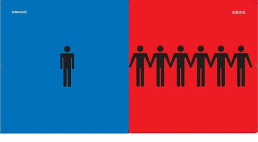 The blue image on the right represents Western Culture while the red one on the right represents Asian culture.