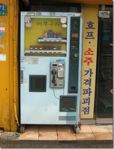 At long last, a single solution has been devised for several major problems that come up on the sidewalks of Korea. This innovative new product is a coffee vending machine/pay phone combination. I propose the name "Call and Coffee."