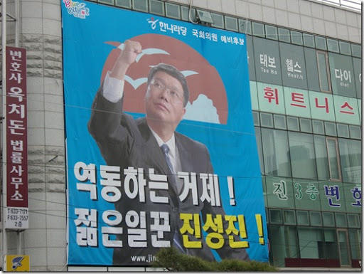 I love politics. Korea just finished their presidential election back in January. Now, they are slowly campaigning for regional and local elections. Here is my favorite election poster.