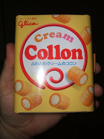 One of my little hobbies when traveling is to check out strange local products. Japan did not dissapoint. My first night in hotel, I was cruising the hotel convenience store for a snack fix, when I came upon a snack food named "Cream Collon."
