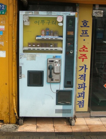 At long last, a single solution has been devised for several major problems that come up on the sidewalks of Korea.  This innovative new product is a coffee vending machine/pay phone combination.  I propose the name "Call and Coffee."